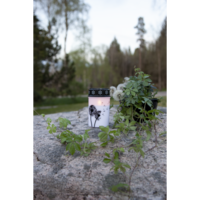 Grabkerze mit aufgedrucktem Muster in Form von Löwenzahnsamen, die mit dem Wind fliegen. Extra lange Lebensdauer; 2500 Stunden und mit einem integriertem Timer.