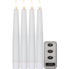 2 Stück Tischkerzen mit einer Höhe von 28 cm, einer glatten Oberfläche und einer Flamme, die einen naturgetreuen Glanz und ein naturgetreues Aussehen bietet. Inklusive IR-Fernbedienung. Maximal 5 Sets (10 Kerzen) können mit der gleichen Fernbedienung betrieben werden. Entfernung max. 5 Meter.