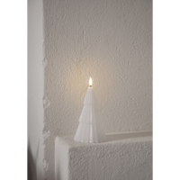 Flamme Grany ist eine elektrische Kerze in Form einer stilisierten Tanne. Sie leuchtet mit einem warmen weißen Schein an der Spitze mit unserer naturgetreuen Flamme "Flamme". Die Kerze hat einen Durchmesser von ca. 9,5 cm und eine Höhe von 15,5 cm für den Wachsteil und ca. 18 cm Gesamthöhe mit der Flamme. Diese LED-Kerze wird eine schöne Dekoration sein, sowohl allein als auch in Gruppen zusammen mit anderen Kerzen aus unserer Flamme-Serie. Sie hat eine Timerfunktion und wenn der Schalter im Timermodus ist, leuchtet das Licht für etwa 30 Tage mit einer schönen realistischen Flamme in warmem Weiß. Sie wird mit 2 AA-Batterien betrieben, diese sind nicht im Lieferumfang enthalten.