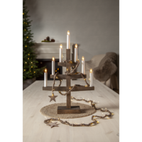 Exklusive Lichterkette für den Innenbereich mit Holzperlen in brauner Beizung. Dünne Metall-Lichterkette mit 30 warmweißen LEDs, die um die Perlen gewickelt sind, gibt einen schönen Schein, geeignet für Tischdekoration und Christbaumschmuck. Batteriebox mit Timerfunktion.